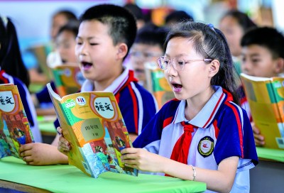 2025年6月23日,内蒙古呼和浩特玉泉区小召小学的学生在晨读。丁根厚摄/光明图片